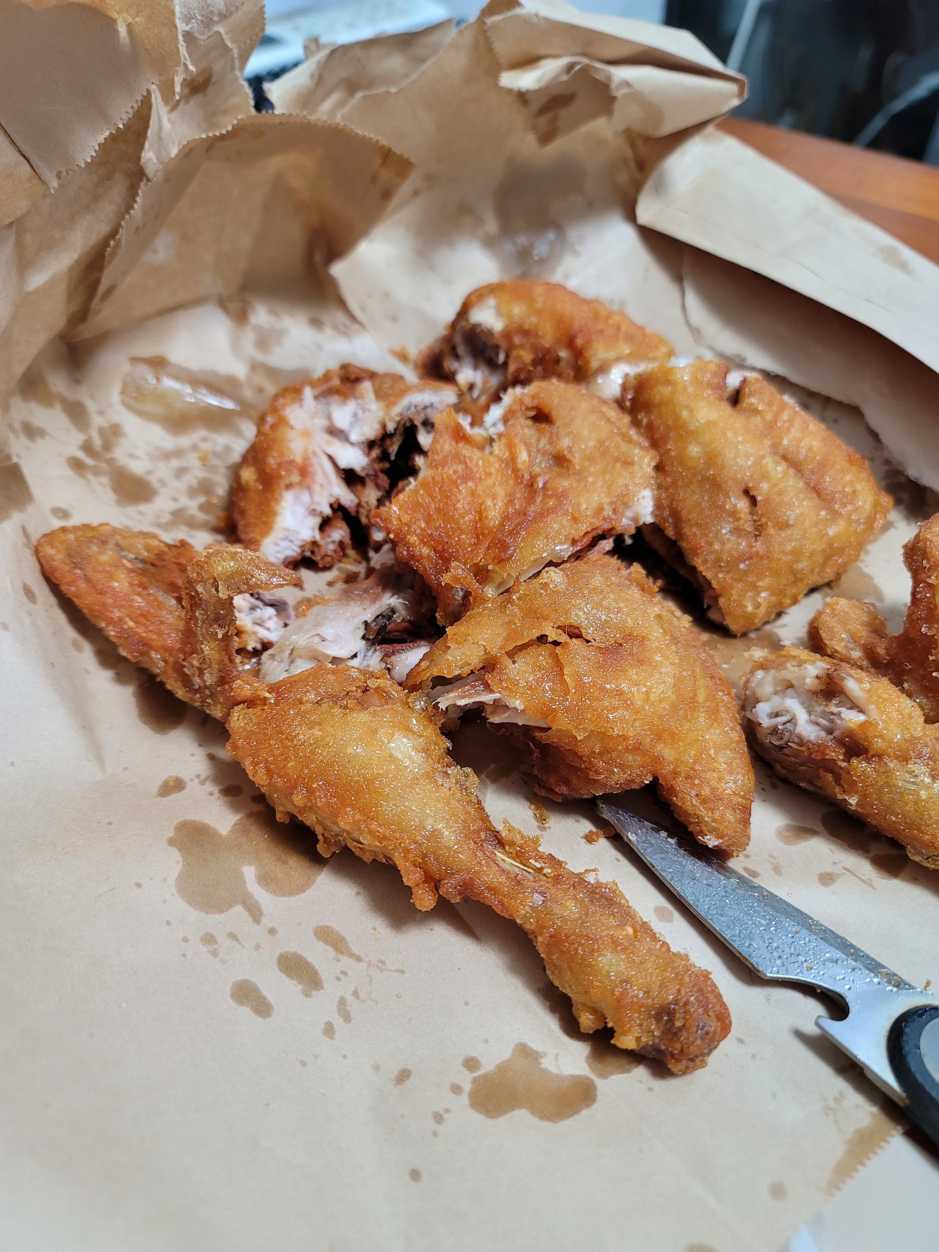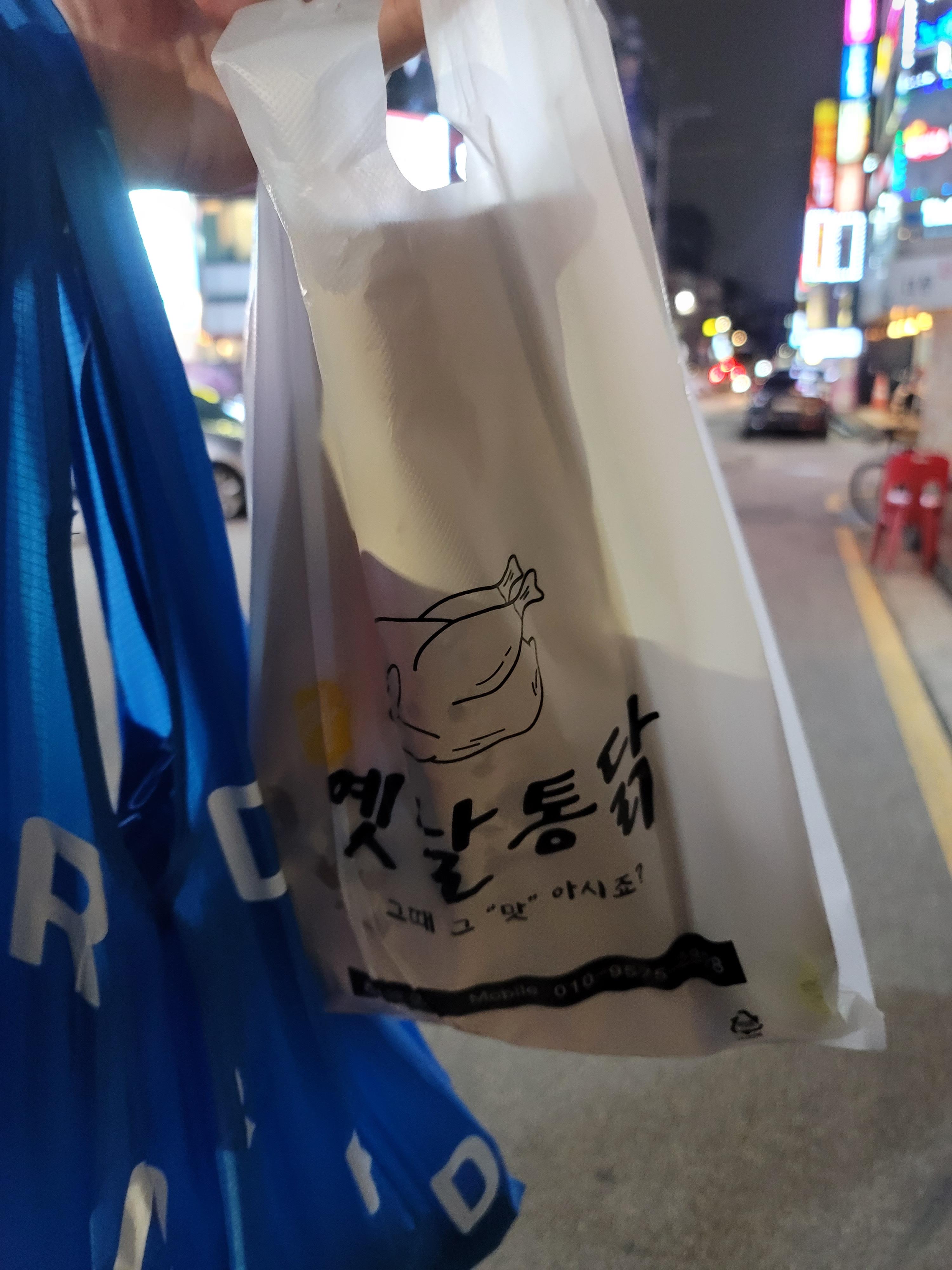 근데 새로 튀긴 옛날통닭을 뜨끈하게 먹을 수 있으니 오히려 좋을지도??